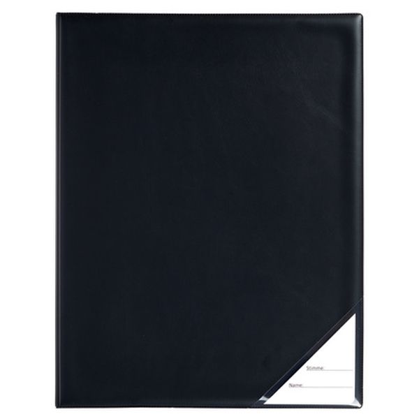 Star Music Folder 205a: portrait format approx. 25 x 32 cm, back width approx. 4,8 cm, 4-fold ring mechanism, filling height approx. 2,6 cm, two insert pockets inside, with insertion window for name tags, material imitation leathe…